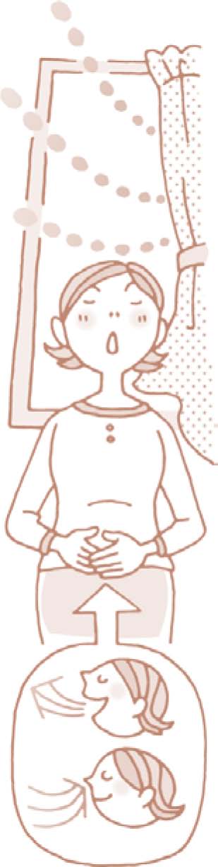 - 进行腹式呼吸。1.肩部放松,手放在肚子上;2.大口吸气,直到充满肺部,再从嘴中慢慢呼出;3.完全呼气后,再用鼻子大力吸气。