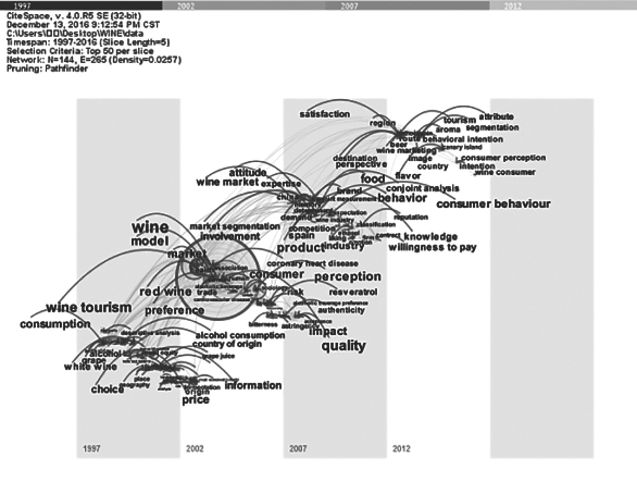 根据态度(attitude)、感知(perception)、满意度(satisfaction)等高频关键词及其出现的时间不难发现,国际葡萄酒旅游研究首先是围绕着葡萄酒旅游者展开的。