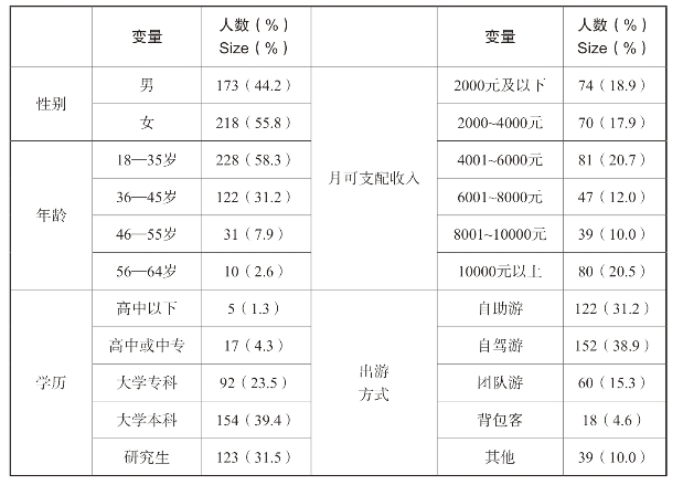 样本中,男性和女性所占比例相当,女性略多于男性;年龄主要集中在18~45岁之间,占比31.2%,其中18~35岁的样本更是占到了58.3%。多数被访者的月可支配收入在4000元以上,占总样本的63.2%;收入集中在两个区间,4000~6000元(20.7%)和10000元(20.5%)以上。结合年龄样本数据分析发现,4000~6000元收入不高的青年人(18—35)与36—45岁的中年人,且收入较高(10000元以上)的两部分人群构成了葡萄酒旅游者的主流群体。这与年轻人喜欢新鲜、刺激,敢于尝试新事物的特点相吻合;也与事业有成的中年人追求人生品位和高质量的社交活动相吻合。多数被调查者的学历在大学本科及以上(70.9%)(见表4.2)。