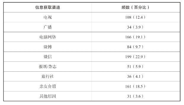 有22.9%的游客获取信息的途径来自“微信”,19.1%的游客来自“电脑网络”充分说明了线上信息的影响力。值得注意的是有18.5%的游客获取信息的途径来自“亲友介绍”,说明了宁夏贺兰山东麓葡萄酒产区在业界已经具备一定的知名度,口碑效应显著。