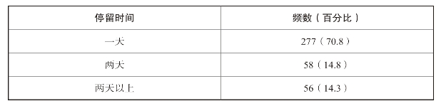 多数游客为一日游游客,占到了70.8%。如上所述,有10%以上的客人都是顺道参观,可以判断,酒庄可能只是游客的中转站,而不是目的地,葡萄酒旅游往往带有附加性色彩,并不是旅游的核心吸引物。也从侧面反映出该产区的公共服务和接待设施欠缺,没有营造出舒适宜人的度假氛围和环境。