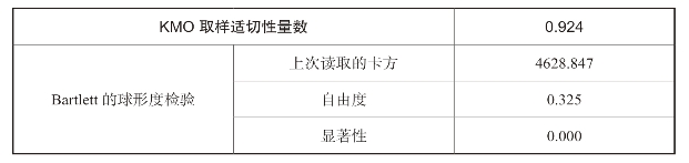 信度和效度分析目的在于评估量表数据的稳定性、可靠度和一致性,该量表的信度越大,说明其测量的标准误差越小。运用SPSS22.0软件对测量指标进行信度分析发现,总量表的Cronbach’s α为0.966,测量维度的Cronbach’s α系数全部大于0.7。一般情况下,当α≥0.70时属于高信度,0.35≤α<0.70时,属于信度尚可,因此,本文所获得的样本数据具有较高的信度。