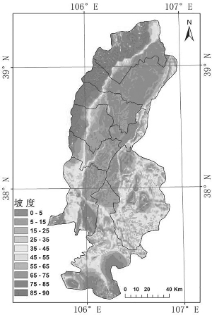 图6.4 贺兰山东麓葡萄酒产区坡度图