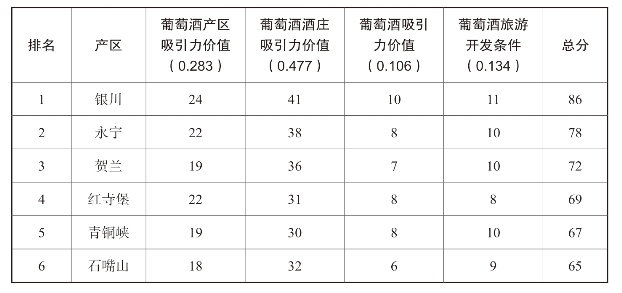 表6.3 子产区葡萄酒旅游资源要素层赋分结果