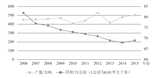 图7.1 2006—2015年度意大利葡萄酒产量和面积
