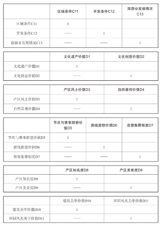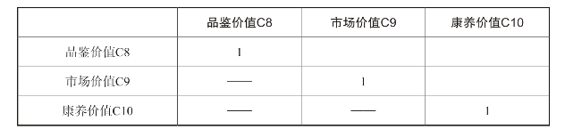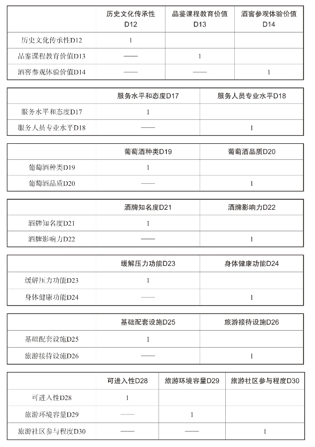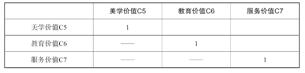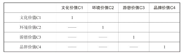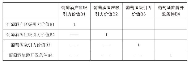 葡萄酒旅游资源开发价值评价指标相对重要性比较判断赋值矩阵。请您依照上述方法对下面矩阵中两两指标的相对重要性在空格中赋值,只填对角线右上角空格即可,画横线的空格不必填写。谢谢您的配合与支持!