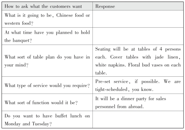 1.The Convention Service Manager is talking with the convention planner about the F&B requirements for ameeting.