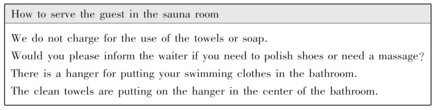 2.At the airport,a hotel clerk meets a foreign business traveler,and introduces to him the hotel facilities,especially those in the fitness center.