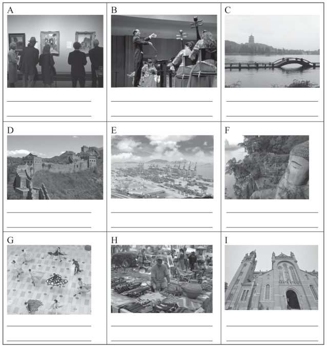 Put the attractions below in the right categories.Then identify the types of attractions for the follow ing pictures,using the words in the list.