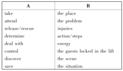 Security Officer:Some guests are locked in the lift!It's urgent!(On receiving the emergency report,the security officer informed the assistantmanager,senior security officer on duty and duty engineer to attend the scene by walkie-talkie.)