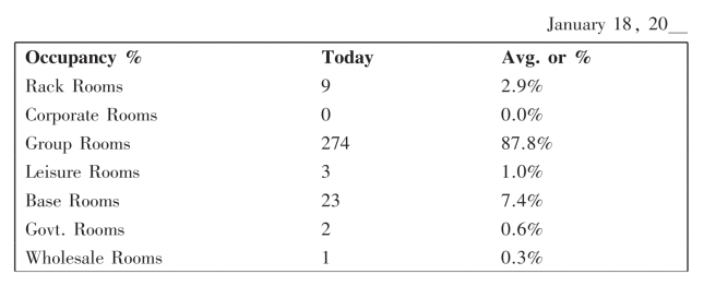 3)How many rooms are occupied on January 18,20___?Number of occupied rooms_________________________