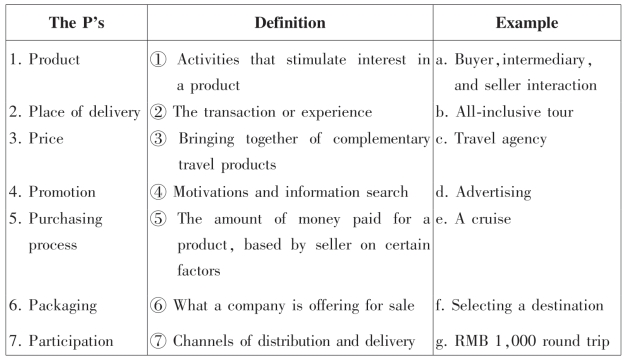 M atch the elements of travel marketing m ix w ith their definitions and exam ples.