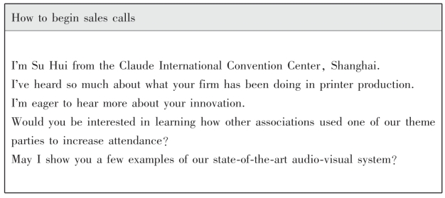 Speaking Ⅰ How to Make a Personal Sales Call定人销售用语