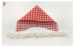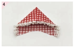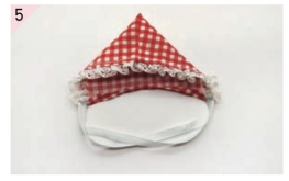 准备两条等长的缎带当帽带,缝合之后小帽子就完成了。