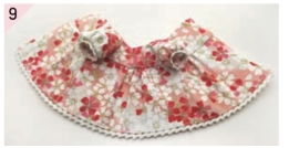 收领口和娃衣下摆的底边,在底边处压好花边。