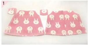 按照书后娃衣纸型把所需要的布料剪好,注意肩带的斜度,这个斜度是防止肩带翘起来的。