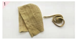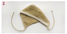 把帽子的布料裁好并如图缝合好,再用同款布料裁出一个长条,对折。缝合并翻面得到一个帽带,帽檐收好底边。