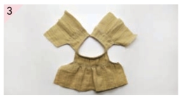 缝合马甲裙前后片肩缝处,并将袖笼弧位置收好底边。