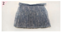 裙子对折压线,留出裙腰开口处,方便娃娃身体穿进去,缝合魔术贴,翻到正面,小裙子就做好了。