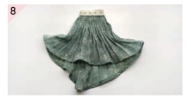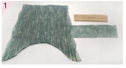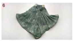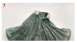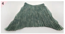 把裙子布料按照3~5mm间距熨出褶皱,再按照纸型裁好裙身形状,准备好腰带部分备用。
