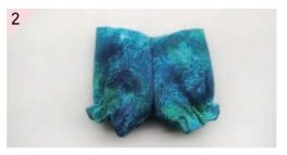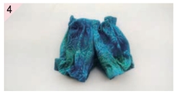 缝合前裆缝,裤脚口收底边并抽褶,以前裆缝为中心对折。