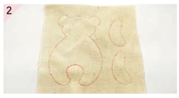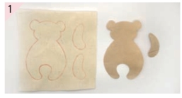 按照纸型把小熊在皮肤布上画好,画两个手臂就可以,因为皮肤布是折叠的。