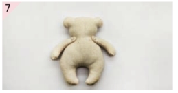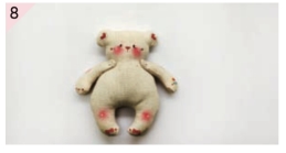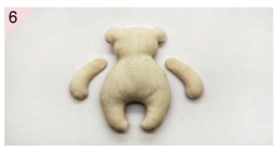 缝合手臂和素体,缝两粒小珍珠当作装饰,小熊基本素体就做好了。