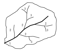 河流是汇集地面水和地下水的天然泄水通道。将汇集的水流汇入海洋或内陆湖泊的河流为干流;而汇入另一条河流的,称为支流。支流可分为多级,直接汇入干流的河流为一级支流;直接汇入一级支流的河流为二级支流,其余的可依次类推,如图3.1所示。河流流经的谷底部分称为河谷,河谷底部有水流的部分称为河床或河槽。面向下游方向,左边的河岸为左岸,右边的河岸为右岸。