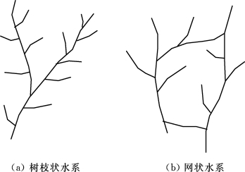 水系(河系)是由干流及其全部支流组成的脉络相通的网状系统,也称河系或河网。自然形成的水系多为树枝状结构,如图3.5(a)所示;人工开挖形成的平原水系或河流入海处可能呈现网状结构,如图3.5(b)所示。