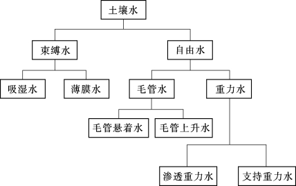 在上述各种力的作用下,根据土壤水分存在的形式和性质,可将土壤水分分为如图6.2所示的类型。