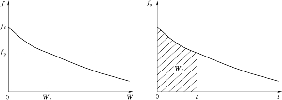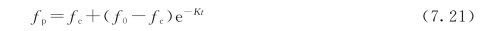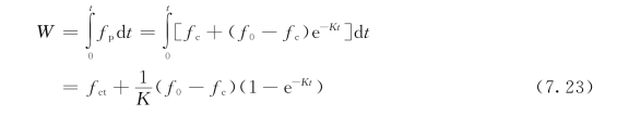 式(7.20)表明,若自供水开始时刻(t=0)起,给定不同的时刻t,计算其累积下渗量Wt,就可建立fp-W关系,其转换关系如图7.14所示。