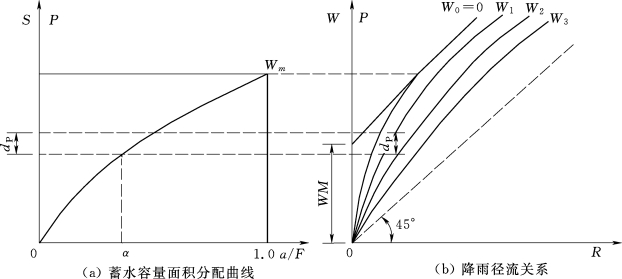 图7.12 蓄水容量面积分配曲线与降雨径流关系