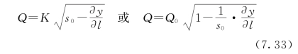 将上式代入式(7.28),并忽略惯性项和附加比降项,则有