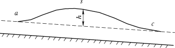 无雨条件下,河道中的水流呈稳定流状态,其水面线如图7.17中虚线所示。当流域上发生暴雨时,大量地表径流汇入河道,使得河道中流量急剧增大,形成洪水波。河道中的洪水波呈不稳定流状态,洪水波要素也如图7.17所示。s为波峰,h为波高,ac为波长,sc部分为波前,as部分为波后,而洪水波的水面线为asc。洪水波的波长比波高大数千乃至数万倍,属某种“超长波”。在稳定流水面线以上部分称为波流量,随着洪水波向下游的波体运动而带走水量。洪水波不同于风波、振动波,洪水波运动随时间变化相当缓慢,属于缓变不稳定流。