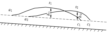 因为附加比降,引起波前及波后的比降和水深不同,又因河道特性的影响,洪水波发生变形。在棱柱型河道内,洪水波自t1时刻的a1s1c1传播到t2时刻的a2s2c2时,洪水波波前sc部分的比降大于波后as部分,因而波前运动速度大于波后,使得运动过程中波长不断增加,波高则不断降低,即a1c1<a2c2且h1>h2,如图7.18所示。这类现象通常称作洪水波的展开。