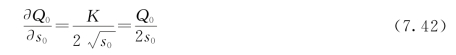 式(7.49)表明河段传播时间是槽蓄量对流量的导数,若以差分方式表达则为
