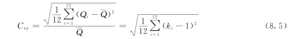 反映径流年内分配不均的特征值较多,主要用径流年内分配不均匀系数Cvy与完全年调节系数。不均匀系数Cvy的计算公式为