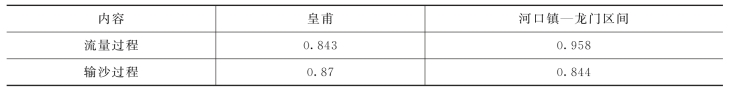 流量过程和输沙过程的有效性系数DC见表9.2,流量和输沙过程的模拟效果良好,用于估算流域侵蚀量具有实际应用价值。
