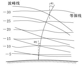 图10.6 岸边波浪折射示意图(单位:m)