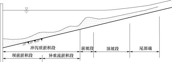 3)常年回水段静水段。接近坝址的库段,流速很小,有时甚至为零,粒径很细的泥沙也逐渐沉淀,成为坝前淤积层。