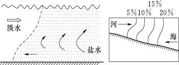 由此可见,河口区咸淡水的混合类型,取决于潮流量与径流量的对比,潮汐弱而径流量大的河口属于高度分层型,潮汐强而径流量小的河口属于强混合型。即使是同一河口,由于不同时期径流量与潮流量之间的对比不同,那么不同时期的混合类型也不同。如长江口,洪水小潮汛时期,属于高度分层型,而平时则属于轻度混合型。
