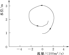 (3)河口区的流量变化。潮水河的水流属于不稳定流,流量不断随时间变化,而且流向也有顺逆变化。水位与流量之间没有稳定关系,一个潮流期(自落潮憩流时开始到下一个落潮憩流时为止)的水位流量关系一般是不规则的环形曲线,如图10.23所示。