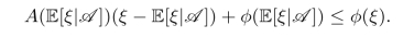 证明.凸性保证φ的左右导数存在,令A是其右导数,则A递增且对任何x0∈R,A(x0)(x-x0)+φ(x0)≤φ(x),x∈R.将x,x0分别用ξ,E[ξ|A]代入: