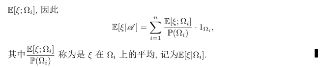 特别地,记P(B|A):=E[1B|A],称为B关于A的条件概率.另外,如果{ξi:i∈I}是一族随机变量.我们记E[ξ|ξi:i∈I]:=E[ξ|σ(ξi:i∈I)].
