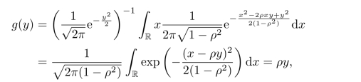 设X,Y是正态分布的,边缘分布是标准正态的,相关系数是ρ.按照公式有E[X|Y]=g(Y),其中