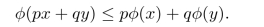 这个定理有直观的解释,实际上是全概率公式的推广,读者可自己试着去理解.最后,我们还有重要的Jensen不等式.R的区间(a,b)上的凸函数φ是指对任何x,y∈(a,b)及p,q≥0,p+q=1,有