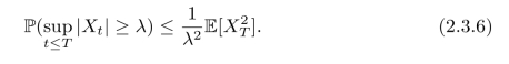 在连续时间情况下,Kolmogorov不等式仍然成立,即如果X=(Xt)是右连续鞅,那么对任意T>0与λ>0有