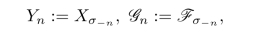 则(Yn:n=0,-1,-2,···)是关于(Gn:n=0,-1,-2,···)的下鞅,且对任何n≤0,EYn=EXσ-n≥EX0,由定理2.1.4 ,(Xσn:n=0,1,2,···)是一致可积的,且因为X是右连续的,故当n→∞时,Xσn几乎处处收敛于Xσ,因而也L1-收敛于Xσ,因此Xσ是可积的,同理Xτ也是可积的.