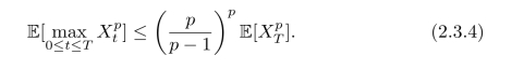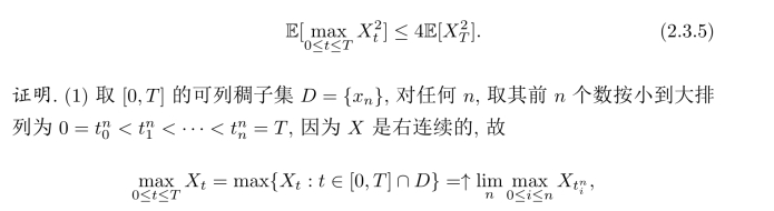 定理2.1.4 中的两个下鞅不等式对限制在可列稠子集上成立,由下鞅的右连续性,Doob的不等式可推广到连续时间下鞅,其中第二个实际上是本节最重要的结果之一,称为Doob鞅极大不等式,在后面将频繁用到.