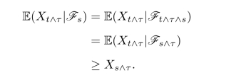 定理2.3.2 设X是右连续下鞅,τ,σ是有界停时且σ≤τ,则Xσ,Xτ是可积的